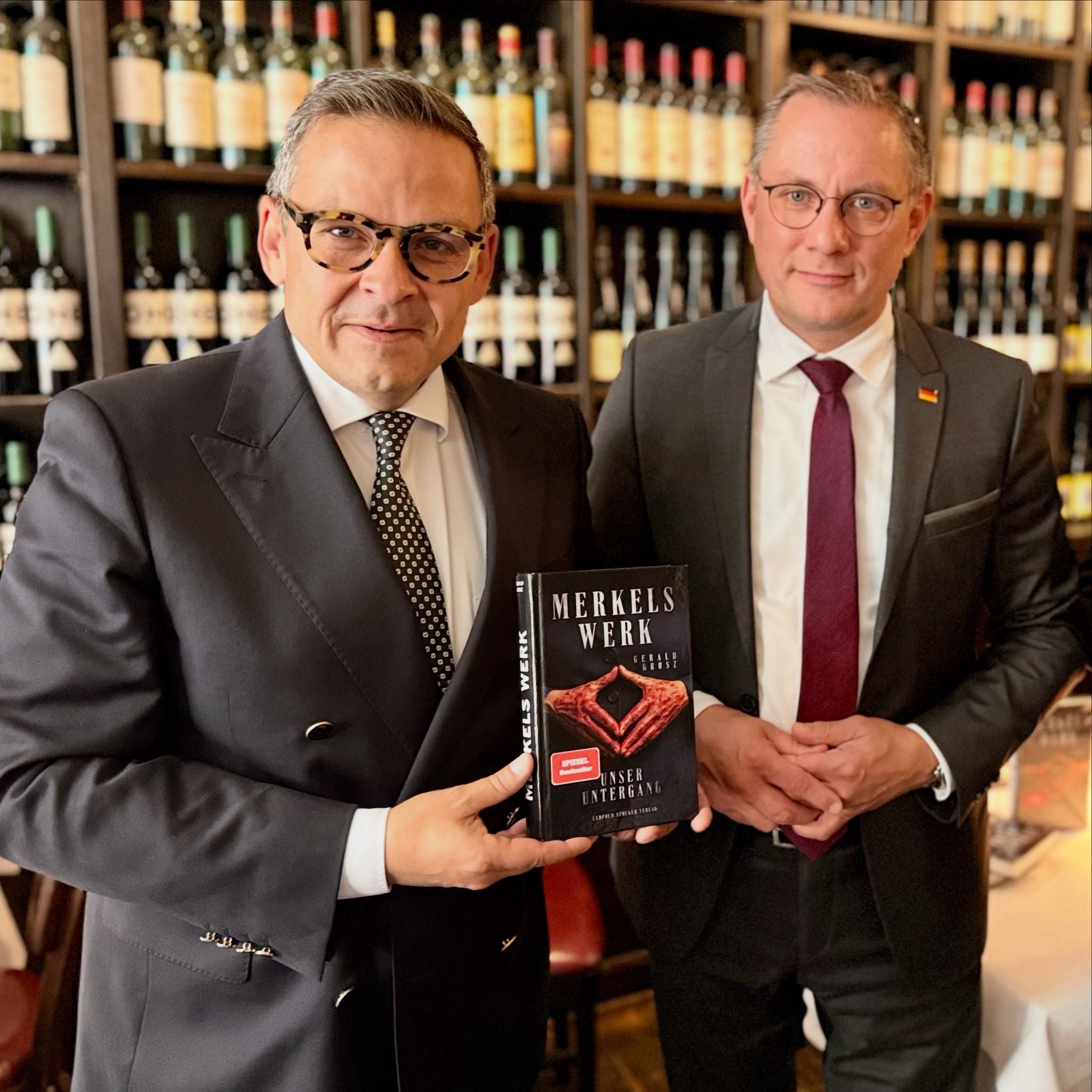 Zwei, die sich einig sind, wenn es gegen die ehemalige deutsche Kanzlerin Angela Merkel geht: Gerald Grosz und Tino Chrupalla .
