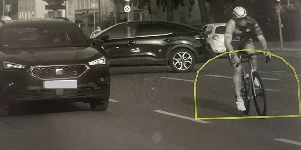Auch Radfahrer können bei überhöhter Geschwindigkeit in Radarfallen geraten – das zeigt das schwarz-weiße Blitzerfoto des Vorfalls. Eigentlich wären dafür in Berlin 70 Euro Bußgeld fällig. Da Fahrräder jedoch kein Kennzeichen haben, ist es schwierig, den Raser zu identifizieren – es sei denn, er meldet sich freiwillig bei der Polizei.