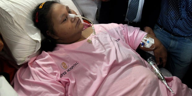 Ahmed soll 500 Kilogram gewogen haben, bevor sie Anfang des Jahres aus Kairo zunächst nach Mumbai in Indien in eine Spezialklinik gebracht wurde. Dort verlor sie den Ärzten zufolge angeblich fast die Hälfte ihres Körpergewichts. Ihre Familie beschuldigte die Klinik aber, Ahmed für die Erlangung von Aufmerksamkeit zu missbrauchen und beim abgespeckten Gewicht zu übertreiben.