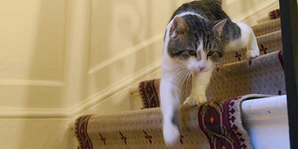 Downing Street 10: Nach einem Jahr im "Dauerstreik" tut Larry erstmals seine Pflicht.