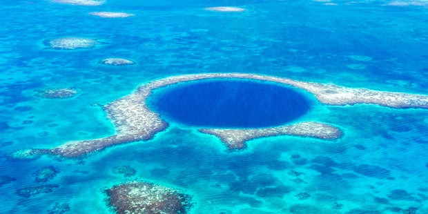 Das Great Blue Hole ist eines der beliebtesten Sehenswürdigkeiten von Belize. Es liegt im so genannten karibischen Lighthouse Reef, etwa 80 Kilometer von Belize City entfernt. Aus der Luft wirkt das Great Blue Hole dabei besonders imposant. Bei einem ersten Blick auf das 300 Meter breite Loch lässt die wahre Attraktion jedoch noch nicht erahnen – in etwa 40 Metern Tiefe befindet sich hier nämlich ein unterirdisches Höhlensystem.