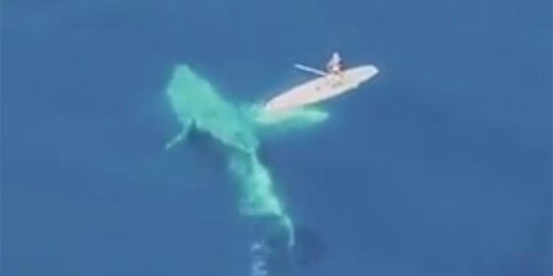 Nichts für schwache Nerven. Eine Paddlerin aus Hawaii machte wohl die beeindruckteste Begegnung ihres Lebens. Wer kann schließlich schon von sich behaupten gemeinsam mit einer Gruppe von riesigen Buckelwalen Seite an Seite geschwommen zu sein.