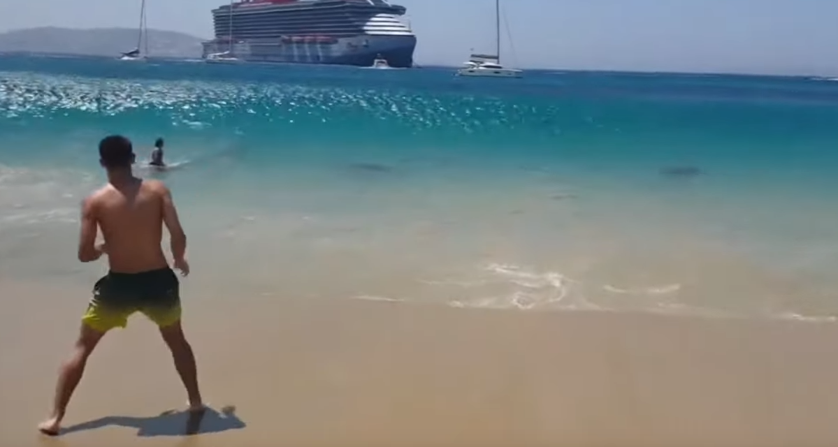 Mega-Schreck für Urlauber auf der Griechen-Insel Mykonos. Touristen badeten gerade gemütlich am Strand, als sich plötzlich eine Riesen-Welle näherte. Mehrere Urlauber wurden mit voller Wucht von der Monster-Welle erfasst und teilweise verletzt. Eine Frau brach sich sogar zwei Rippen.
