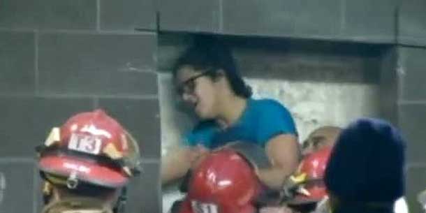 Die junge Frau geriet zwischen zwei einstürzende Hausmauern, als sie sich auf dem Dach eines zweistöckigen Gebäudes bewegte. Nur 30 Zentimeter blieben ihr Platz - eine Herausforderung für die herbeigerufenen Sicherheitskräfte.