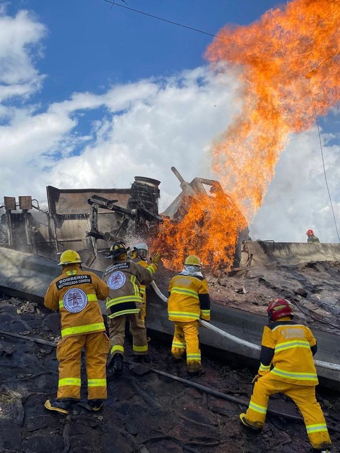 Der Unfall ereignete sich am frühen Nachmittag (Ortszeit) im östlichen Stadtteil Santa Martha Acatitla, in einer Kurve an der stark befahrenen Grenze zwischen dem Hauptstadtdistrikt und dem Bundesstaat México. Feuerwehrleute löschten den Brand, wie die Koordinatorin des nationalen Zivilschutzes, Laura Velázquez, dem Fernsehsender N+ sagte.