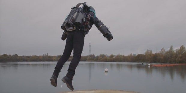 Der Brite sauste mit Düsenantrieb auf dem Rücken mit 51,53 km/h über einen See.