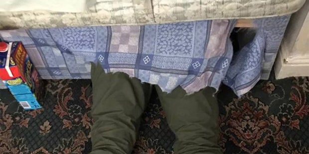 Ein im britischen Calderdale von der Polizei gesuchter Mann wollte sich unter einem Bett verstecken, als die Beamten letzte Woche sein Haus durchsuchten – doch sein Plan funktionierte sichtlich nicht besonders gut. Die Polizisten waren von dem Versuch so begeistert, dass das Foto direkt auf Facebook geteilt wurde.