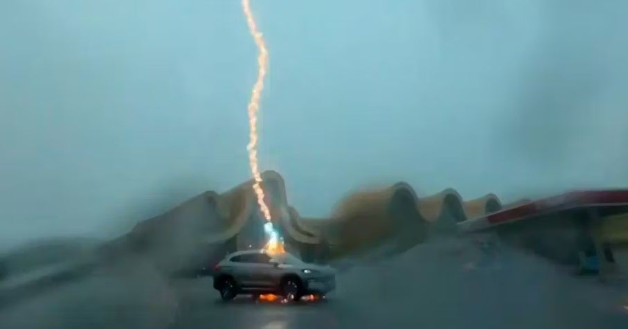 Schock in der chinesischen Stadt Beihai: Ein BYD Song Plus Elektro-SUV wurde während eines Gewitters gleich dreimal hintereinander vom Blitz getroffen.