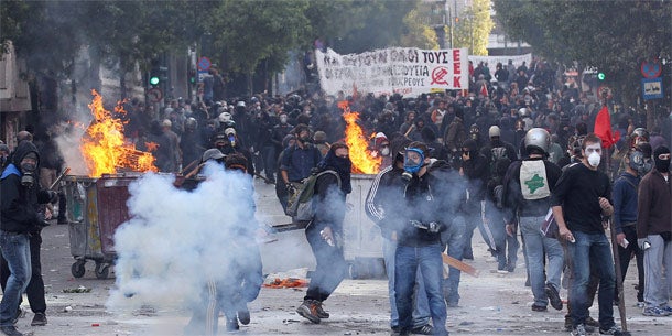 Am Rande von Demonstrationen mit Zehntausenden Teilnehmern gegen den Sparkurs der Regierung war es in Athen auch zu Krawallen und Auseinandersetzungen von Demonstranten untereinander und mit der Polizei gekommen. Dabei starb ein Mensch an einem Herzinfarkt. 74 Menschen wurden verletzt.