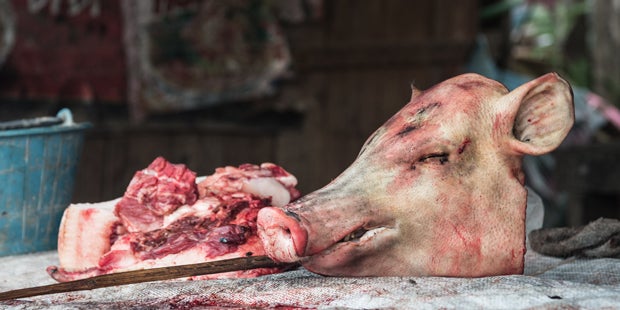 An einer Moschee-Baustelle im französischen Bergerac wurden ein Schweinskopf und Tierblut entdeckt.