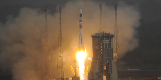Eine russische Sojus-Rakete hob planmäßig vom Weltraumbahnhof ab.
