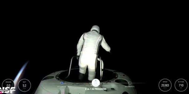 Beim ersten privat finanzierten Weltraumspaziergang der Geschichte hat Bord-Kommandant Jared Isaacman das Raumschiff verlassen.