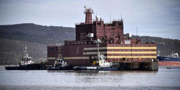 Ziel der "Akademik Lomonossow" ist die kleine und äußerst abgelegene Stadt Pewek in Ostsibirien, die Route führt entlang der Nordküste Russlands. Die riesige Plattform, auf der das Atomkraftwerk steht, hat keine eigenen Motoren. Sie wird deshalb von mehreren Schiffen geschleppt.