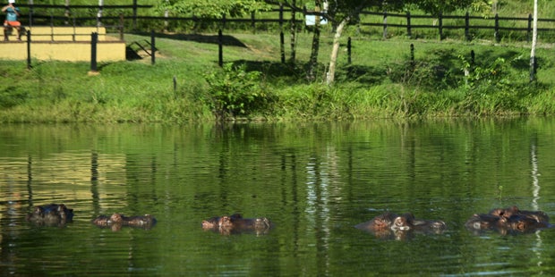 "Es sind zwei oder drei Gruppen. Manchmal sind sie unter Wasser, dann wieder an Land. Deshalb wissen wir nicht genau, wie viele es gibt", sagte der Leiter des Themenparks Hacienda Napoles, Oberdan Martinez.