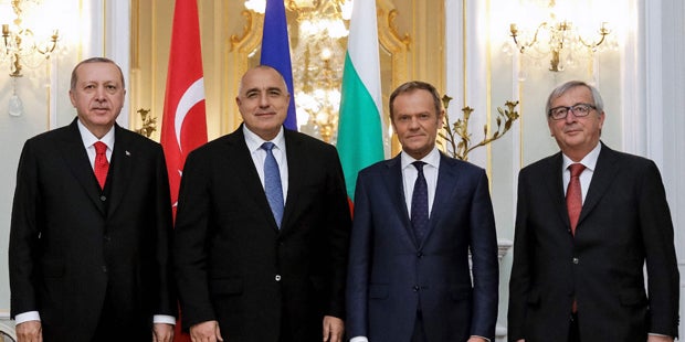 Erdogan zog eine positivere Bilanz des Treffens. "Ich hoffe, dass wir die schwierige Zeit in den Beziehungen mit der EU hinter uns gelassen haben", sagte er. Die Türkei erwarte von der EU eine Visaliberalisierung sowie die Ausdehnung der Zollunion. Zudem wäre es "ein großer Fehler", wenn die Europäische Union die Türkei aus dem Erweiterungsprozess ausschlösse. Die Kritik an Menschenrechtsverletzungen wies er zurück und betonte: "Die Türkei ein demokratischer Rechtsstaat, der Menschenrechte und Grundrechte und Freiheiten respektiert." Zum Streit um die türkische Blockade von Erdgasbohrungen in Zypern sagte er, die Interessen der türkischen Zyprioten müssten berücksichtigt werden.