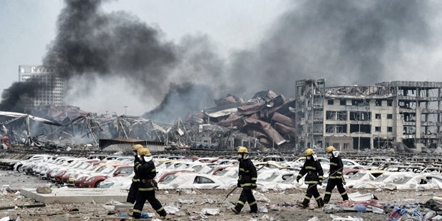 Auf dem Hafengelände im Binhai Distrikt der Millionenmetropole waren in der Nacht auf Donnerstag tonnenweise gefährliche Chemikalien explodiert und hatten schwere Zerstörungen angerichtet. In einem kilometerweiten Umkreis gab es noch Schäden. 17.000 Haushalte, 1.700 Unternehmen und 675 Geschäfte waren betroffen. In zwölf Schulen und drei Wohnhäusern wurden Unterkünfte für 6.300 Obdachlose geschaffen, deren Wohnungen zerstört oder schwerbeschädigt wurden.