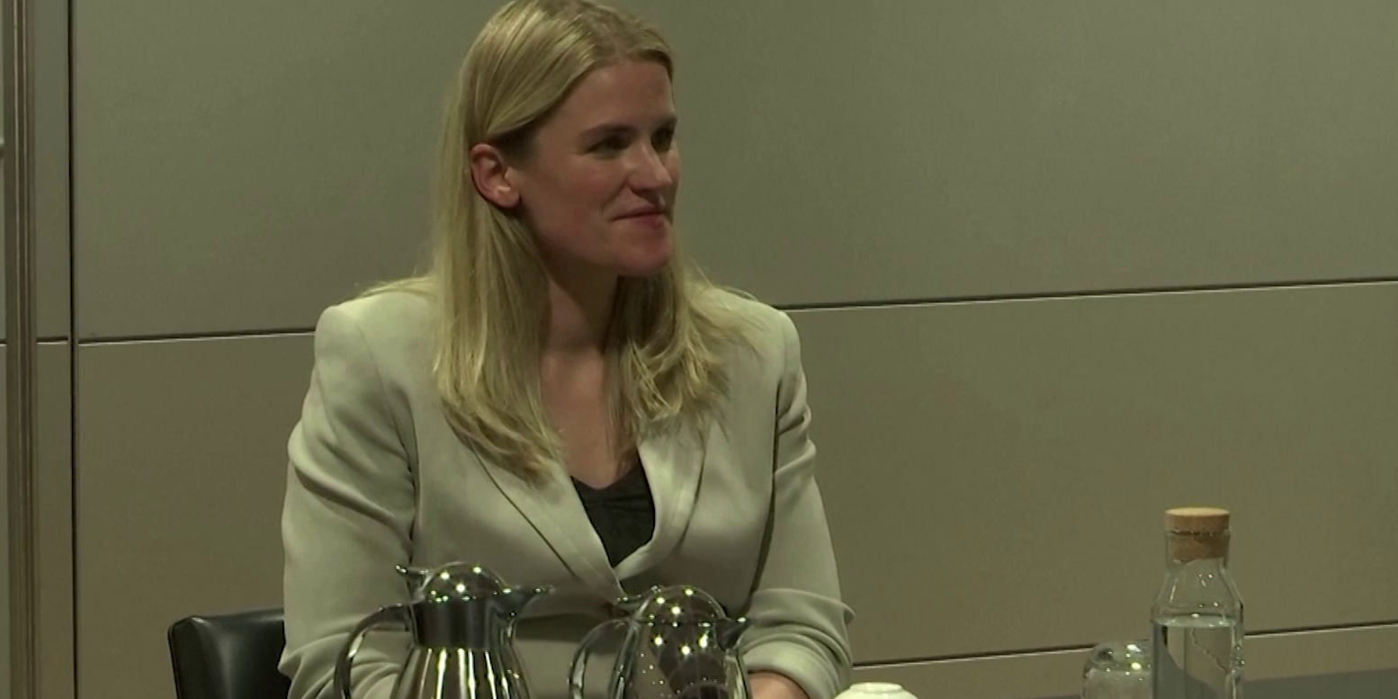 Frances Haugen tritt für eine stärkere Regulierung von Online-Unternehmen auf.