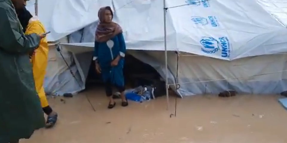First the fire, now floods. Tents completely submerged in water.