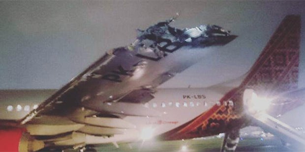 Schrecksekunde für die Passagiere an Bord einer Boeing 737. Die Maschine der Batik Air wollte am Flughafen von Jakarta (Indonesien) befand sich gerade auf dem Weg zur Landebahn, als es sie mit einem anderen Jet kollidierte.