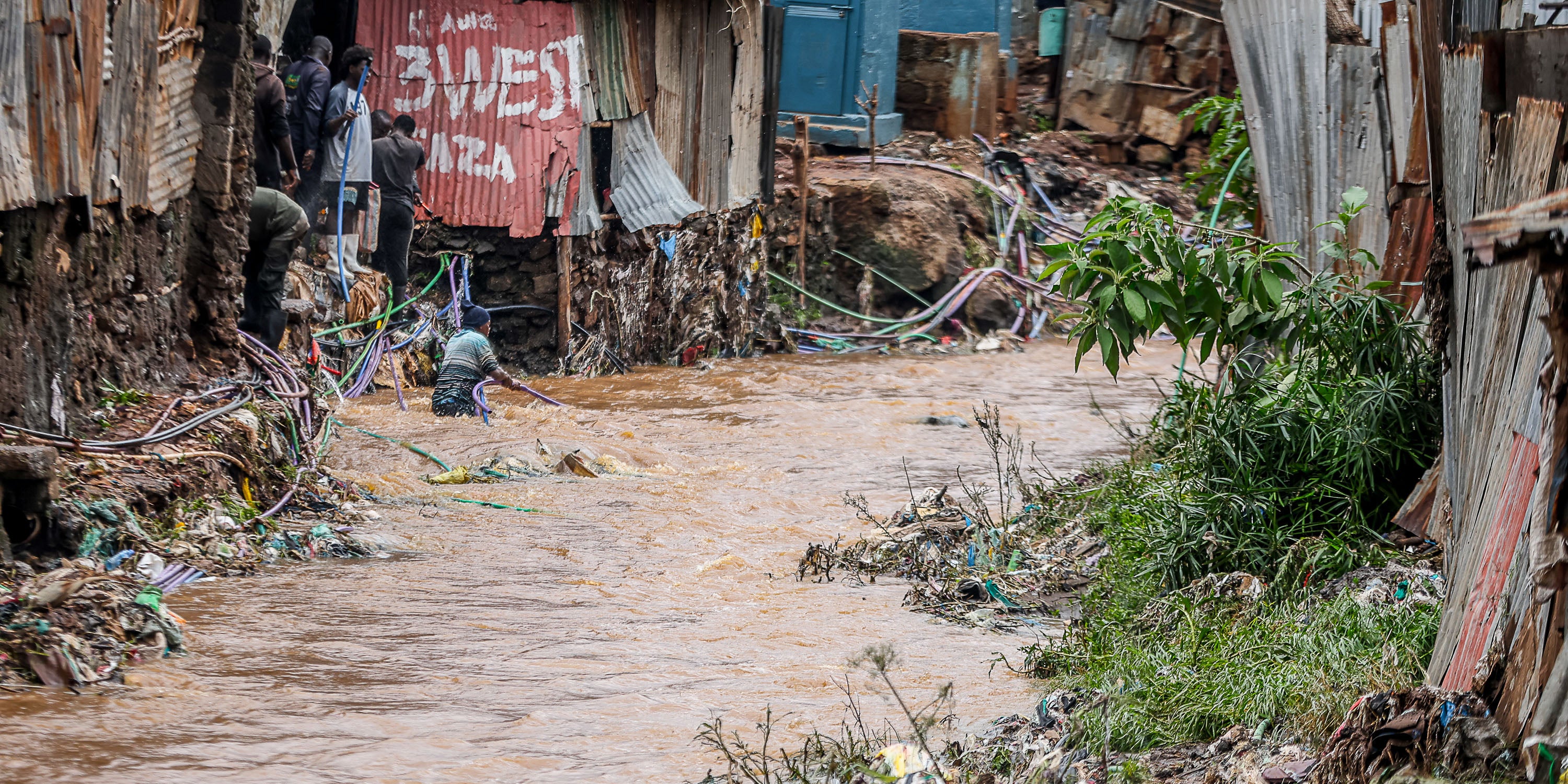 In Kenias Hauptstadt Nairobi hatte es am Freitagabend so stark geregnet, dass sich Straßen in reißende Flüsse verwandelten und Tausende Häuser und Geschäfte überschwemmt wurden. Betroffen waren sowohl Nairobis Armenviertel als auch wohlhabendere Wohngegenden.