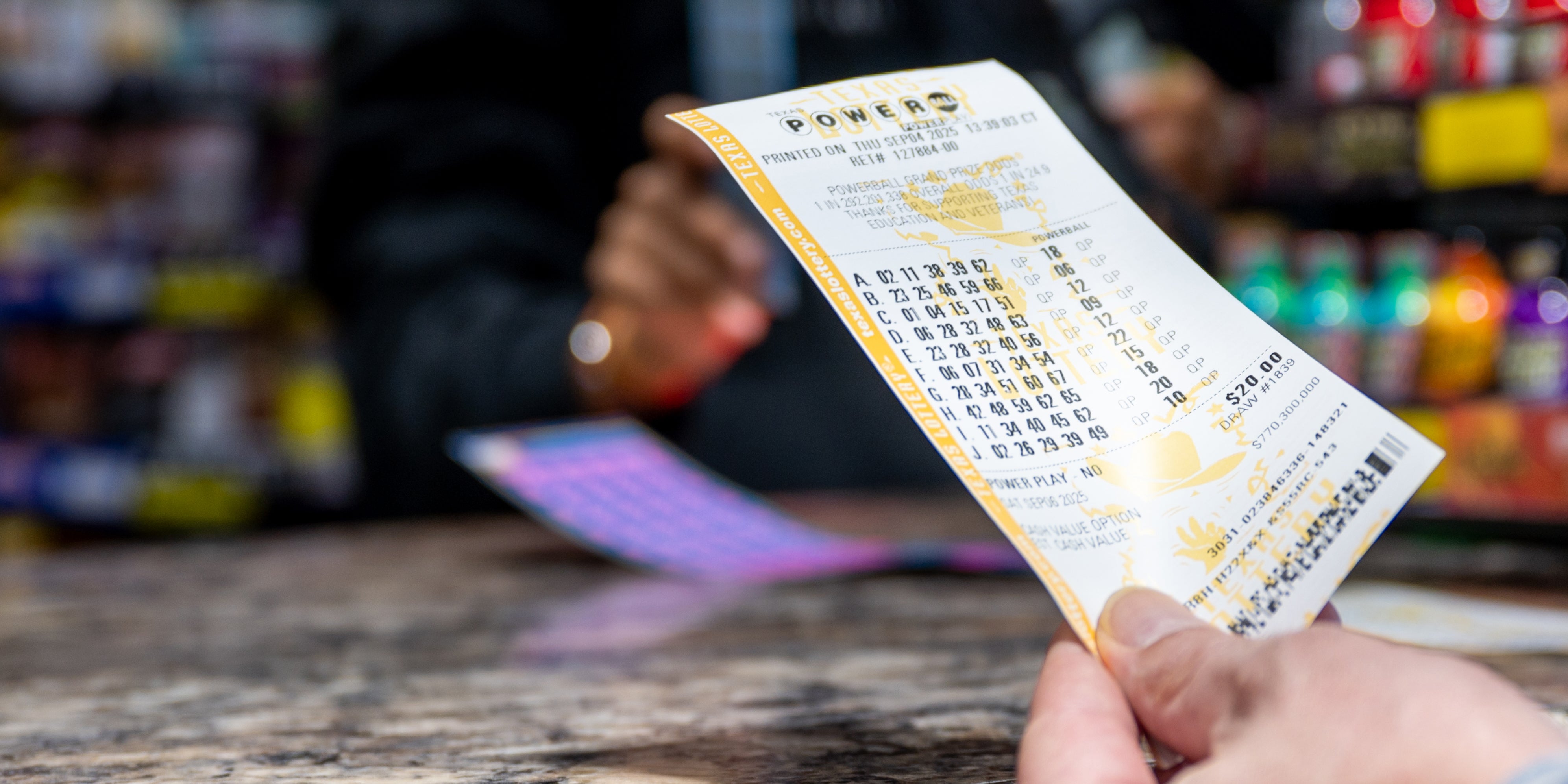 Carrie Edwards hält im September 2025 einen symbolischen Scheck über 150.000 Dollar gemeinsam mit dem Geschäftsführer der "Virginia Lottery", Khalid Jones.