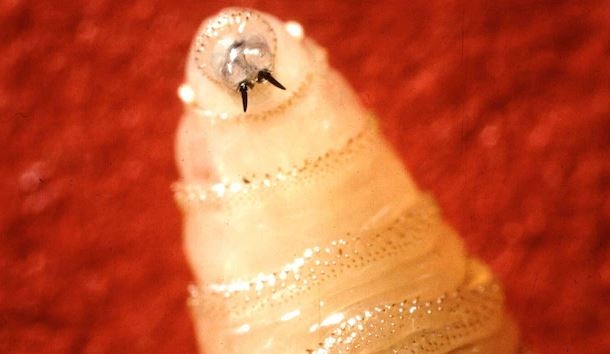 Der Neuwelt-Schraubenwurm ist die Larve einer Fliege, die sich nicht nur von abgestorbenem Gewebe ernährt, sondern aktiv in lebendes Fleisch eindringt. Befallene Wunden weiten sich rasch aus, unbehandelt kann die Infektion tödlich enden.
