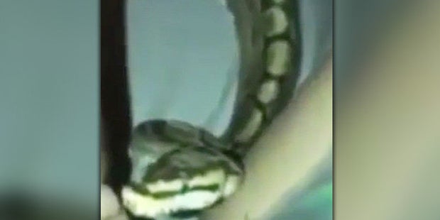 Stolz zeigt die Frau vor laufender Kamera ihre Schlange und legt das Reptil zu sich ins Bett. Nur Sekunden später, dann aber plötzlich das Unheil. Das Reptil attackiert seine Besitzerin und beißt die Frau in die Hand. Die Schlangenbesitzerin schriet laut auf, bleibt aber zum Glück unverletzt.