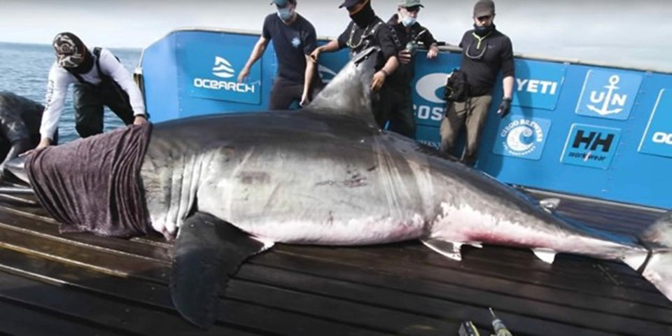 "Nukumi" ist eine der größten Hai-Damen die je vor der Küste Kanadas gefunden wurde. Ein Team der Organisation "Ocearch" hat den Weißen Hai bei einer Expedition im Atlantik entdeckt. Das Tier wiegt 1,6 Tonnen und soll bereits über 50 Jahre alt sein, so die Forscher.