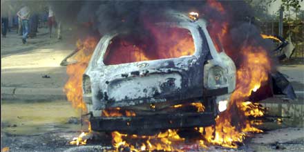 Ein Auto flog bei einer Militäreinrichtung in die Luft.