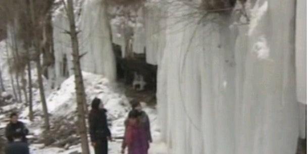 Die frostigen Temperaturen haben in China einen gewaltigen Wasserfall stillgelegt.