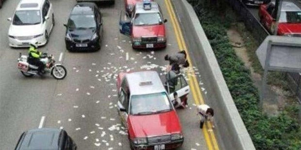 Mehrere Millionen Hongkong-Dollar hat ein Geldtransporter auf einer Straße verloren und damit zahlreiche Autofahrer und Fußgänger glücklich gemacht.