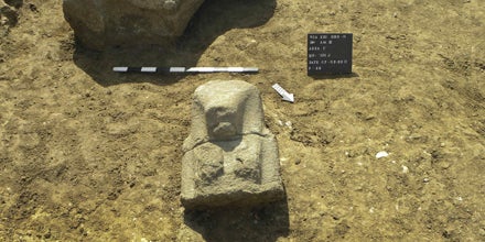 Die 13 Meter hohe Skulptur stand vermutlich einst am Eingang eines Tempels.