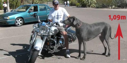 Groß, größer, "Giant George": Eine deutsche Dogge aus den USA darf sich mit dem Titel "größter Hund der Welt" schmücken. "George" aus der Stadt Tucson im Bundesstaat Arizona wurde am Montag in London offiziell in das Guinness Buch der Rekorde aufgenommen. Mit 1,09 Meter Höhe von der Pfote bis zur Schulter und 2,2 Meter Länge von der Nase bis zur Schwanzspitze überzeugte er die Guinness-Jury. "George" bringt 111 Kilogramm auf die Waage und verschlingt rund 50 Kilogramm Futter im Monat.