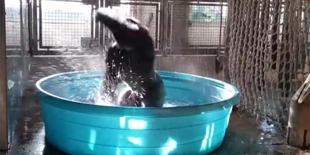 Als „Zola“ sein neues Planschbecken einweiht, dreht das Tier vor Freude förmlich durch. Völlig außer Rand und Band dreht das majestätische Tier gleich einmal ein paar Pirouetten im Becken. Sehr zu Begeisterung des Internets. Der Clip wurde bereits mehrere Millionen Mal geklickt.