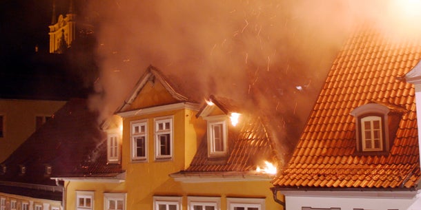 Mehrere Häuser des historischen Stadtkerns sind von dem Feuer betroffen.