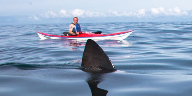 In der irischen See näherten mehrere Riesenhai zwei Kajak-Fahrern. Becca Goodson berichtet später, dass sie mindestens sieben Haie ausmachte. Diese hätten sich ihnen plötzlich genähert und sie dann umkreist.