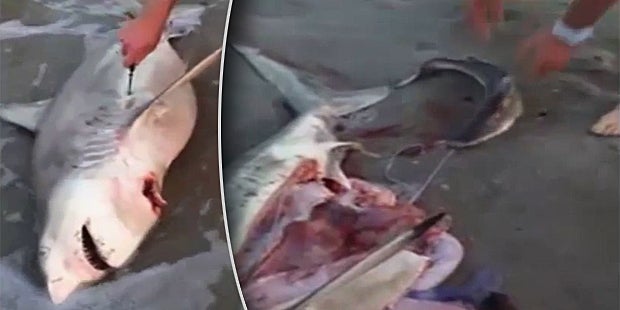 Eine amerikanische Familie ist am Strand in Kapstadt (Südafrika) auf einen toten Hai gestoßen. Als sich im Bauch des Fisches etwas bewegte, beschlossen die Urlauber, genauer nachzusehen. Ihr Verdacht: Der Hai könnte schwanger sein.