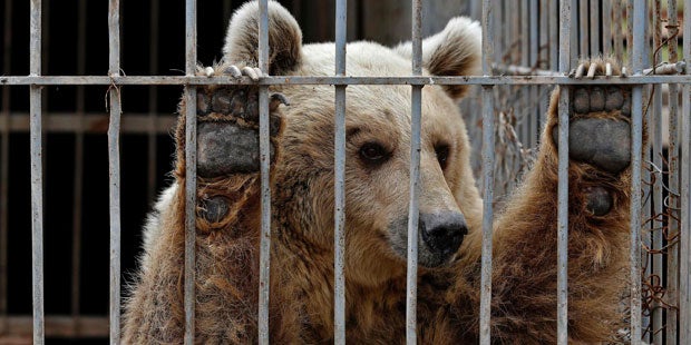 Bis vor zwei Wochen lebten die Zootiere unter furchtbaren Bedingungen im zerbombten Muntasah al-Nur Zoo in Mosul. Der 52-jährige Tierarzt hatte die Bärin und den Löwen im Februar bei einem Besuch des privaten Zoos im Osten der umkämpften Großstadt entdeckt. Ihre Käfige waren verdreckt, ihr Fell war voller Schlamm und Kot. Wegen der fehlenden Pflege infolge der anhaltenden Kämpfe waren sie zudem mangelernährt. "Es ist meine Aufgabe als Veterinär, sie an einen sicheren Ort zu bringen. Das sind Flüchtlinge", sagte der ägyptisch-österreichische Tierarzt.
