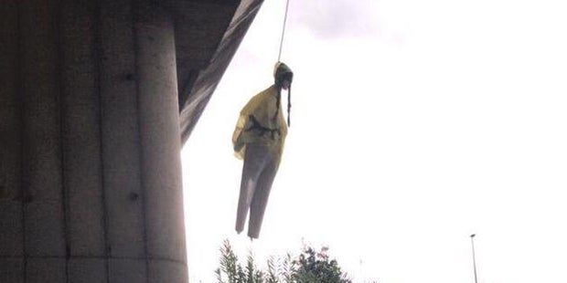 In den sozialen Medien kursierten Fotos von der am Geländer einer Brücke aufgehängten Puppe mit der Aufschrift "Greta is your God" (Greta ist euer Gott). Wie die 16-jährige Klimaschutzaktivistin trug die Puppe zwei geflochtene Zöpfe.