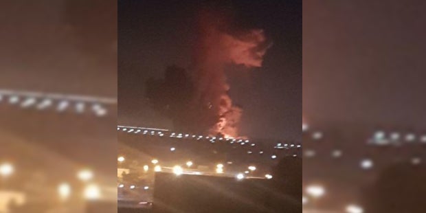In der Nähe des Flughafens soll ein Tanklager Feuer gefangen haben und explodiert sein.