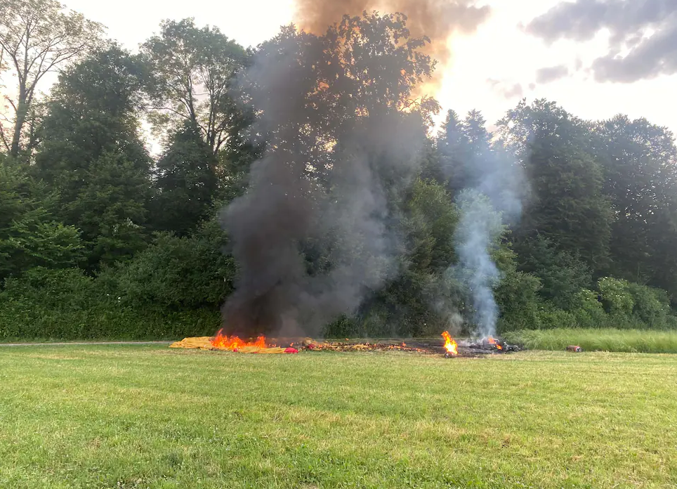 Wie die Polizei am Samstag mitteilte, fing das Gerät am frühen Morgen beim Startmanöver Feuer. Dadurch landete der Ballon in der Gemeinde Hünenberg im Kanton Zug aus geringer Höhe unsanft am Boden.