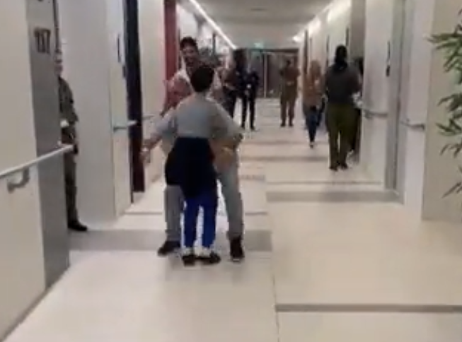 Ein herzzerreißendes Video zeigt den Moment, in dem ein neunjähriger israelischer Junge seinem Vater in die Arme läuft, nachdem er nach 49 Tagen in der Hölle der Gefangenschaft durch Hamas-Terroristen im Gazastreifen wieder mit seiner Familie vereint wurde.