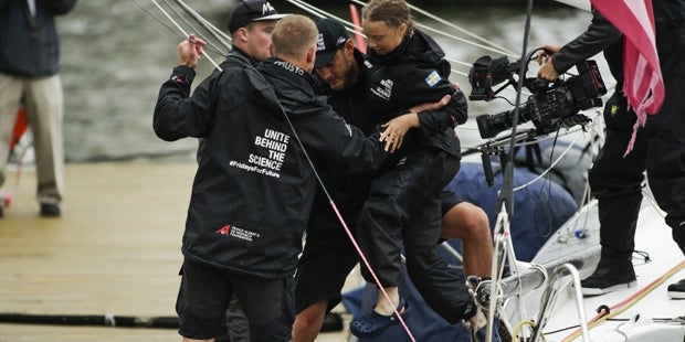 "All das hier ist sehr überwältigend. Der Boden wackelt noch", sagte die junge Schwedin unmittelbar nach ihrer Ankunft im Hafen North Cove Marina in Manhattan. Der Transatlantik-Törn sei überraschend gut gewesen. "Ich habe mich nicht ein Mal seekrank gefühlt", sagte sie. Vom norddeutschen Segelprofi Boris Herrmann, der seinen prominenten Gast an Bord der Rennyacht "Malizia" gemeinsam mit seinem Co-Skipper Pierre Casiraghi über den Ozean gebracht hatte, gab es Lob. "Sehr wenige Menschen hätten das geschafft", sagte er.