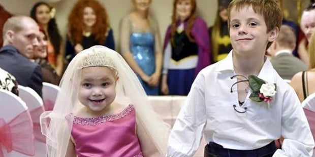 Hinter dieser Zeremonie verbirgt sich allerdings eine traurige Geschichte. Die kleine Eileidh ist an Krebs erkrankt und hat nicht mehr lange zu leben. Ihr letzter großer Wunsch war eine Märchenhochzeit. Eileidh Mutter zeigte sich gegenüber dem „Mirror“ zufrieden: „Harrison passt sehr gut auf sie auf und achtet immer darauf, dass es ihr gut geht. Die beiden haben eine wundervolle Verbindung.“