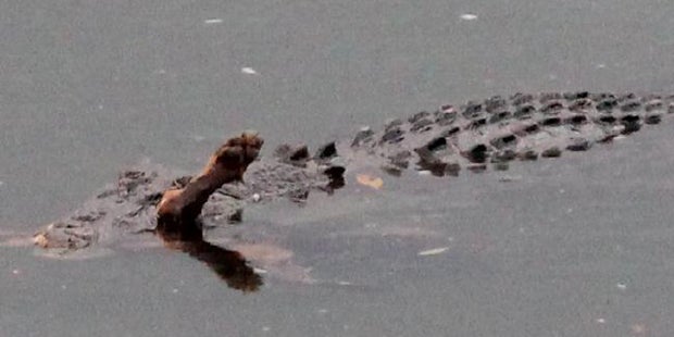 Dieses Foto ist alles was von Rusty übrig geblieben ist. Es zeigt sein tödliches Schicksal im Maul eines australischen Krokodils. Die Bilder stammen von Melissa Horton. Sie war Zeugin, als der Hund, während er in ihrem Garten spielte, vom Krokodil geschnappt wurde.