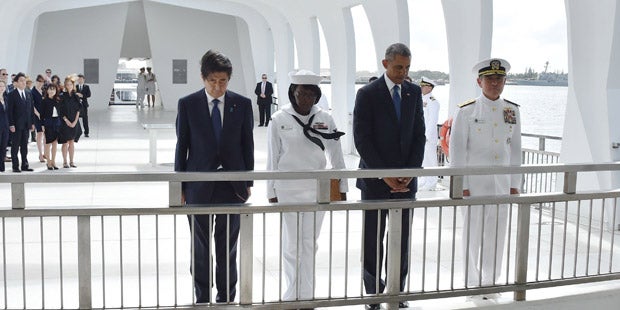 US-Präsident Barack Obama hat 75 Jahre nach dem verheerenden Luftangriff auf Pearl Harbor an historischer Stätte den japanischen Regierungschef Shinzo Abe empfangen. Das Treffen der beiden Staatsmänner wird als weiterer Schritt der Versöhnung der beiden Staaten angesehen, die inzwischen enge Partner in Fragen von Wirtschaft und Sicherheit sind.