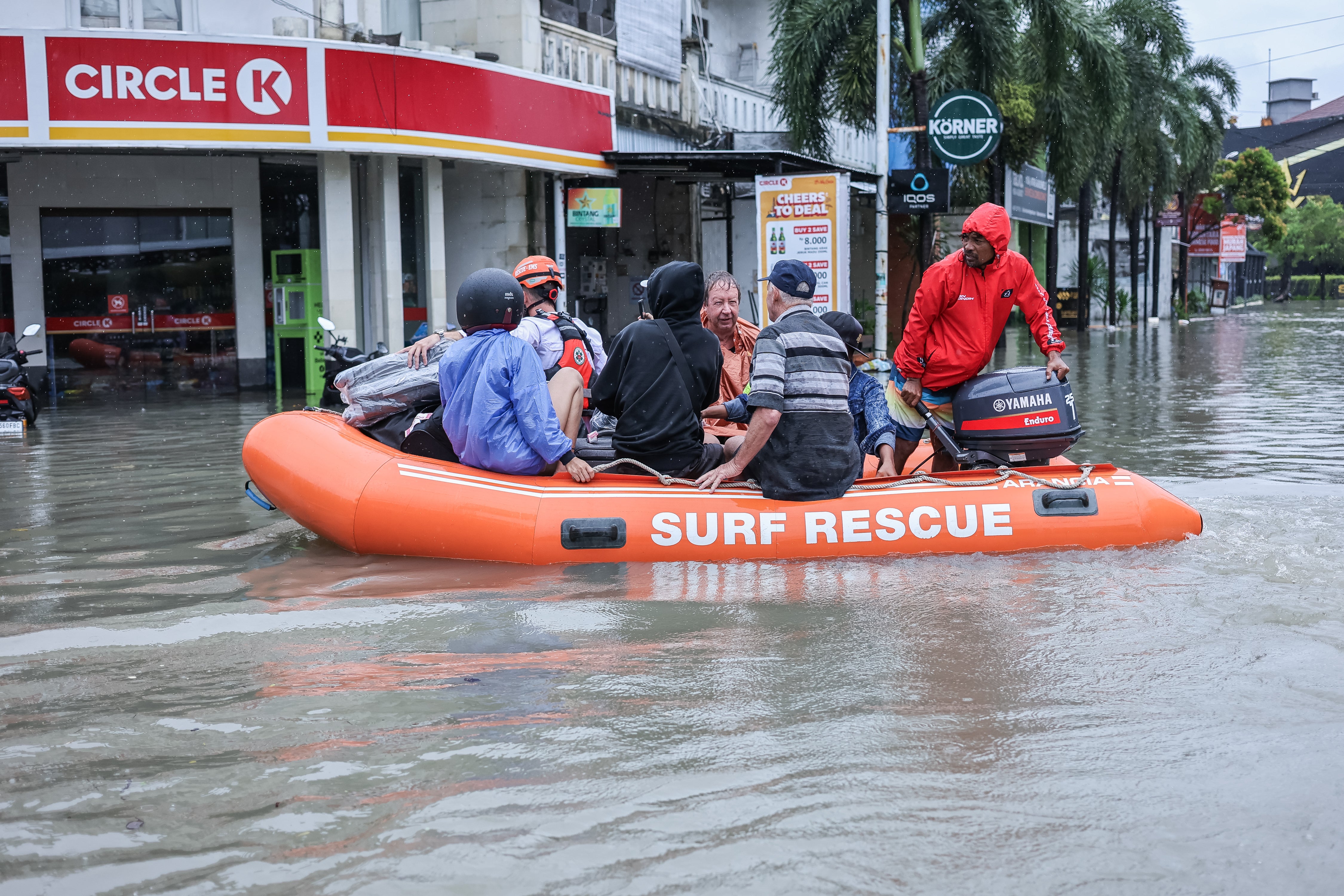 Sintflutartige Regenfälle haben Teile der indonesischen Insel überflutet und Evakuierungen ausgelöst. Besonders im Süden rund um die beliebten Urlaubsorte Kuta, Legian, Seminyak, Sanur und Canggu standen Hotels, Gästehäuser und Villen nach anhaltendem tropischem Dauerregen teils hüfthoch unter Wasser.