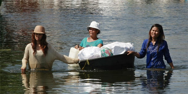 Auf dem Weg ins Zentrum zwangen die Wassermassen die Behörden dazu, im Norden Bangkoks ein großes Kaufhaus zu schließen. Es befindet sich gegenüber dem auch bei Touristen beliebten Chatuchak-Park. Der internationale Suvarnabhumi-Flughafen ist bisher von den Fluten verschont geblieben. "Ich bin zuversichtlich, dass es auch so bleibt", sagte dessen Generaldirektor Somchai Sawasdeepon.