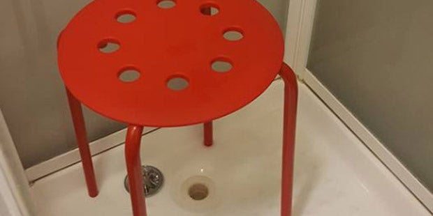 Hocker "Marius" hat auf der Sitzfläche acht Löcher, die scheinbar gerade groß genug sind, dass ein Hoden durchrutschen kann. Genau dies wurde dem Norweger zum Verhängnis, denn so leicht, wie der Hoden hineingeraten war, so schwer konnte Jørstad ihn wieder herausholen. Auf Facebook schilderte der 45-Jährige sein verhängnisvolles Duschabenteuer ganz ungeniert.