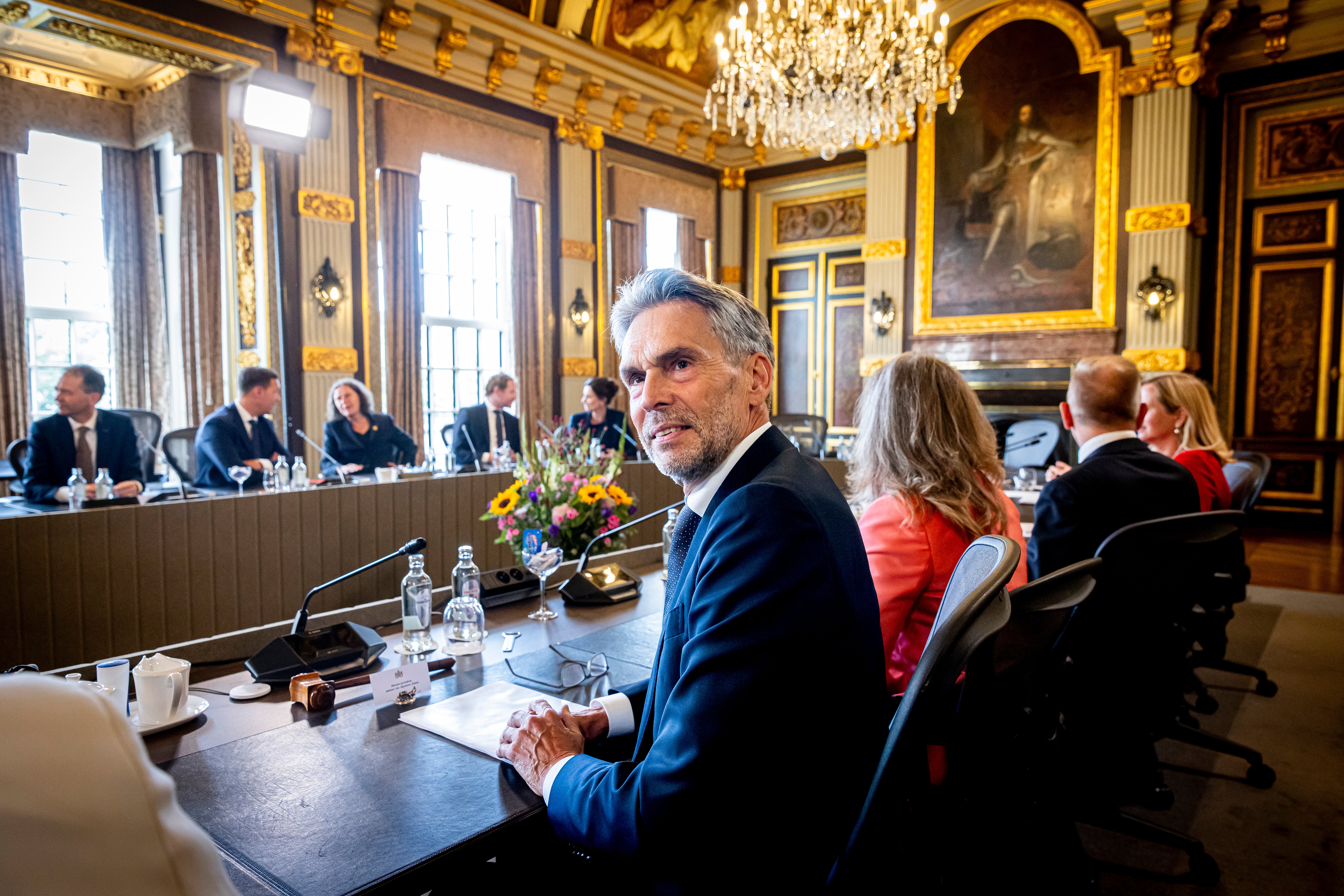 Regierungschef Dick Schoof untersagte alle elektronischen Geräte wie Smartphones oder Tablets bei den Sitzungen und sprach von einer Vorsichtsmaßnahme gegen mögliche Spionage. "Das ist eine ganz selbstverständliche Maßnahme", sagte der parteilose Schoof in Den Haag, solche Apparate hätten schließlich auch Mikrofone. Er war früher auch Geheimdienstchef.
